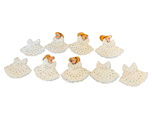 9 Crochet Angel Dresses with 5 Doll Heads Christmas Ornament 3 1/2" x 4 1/2"