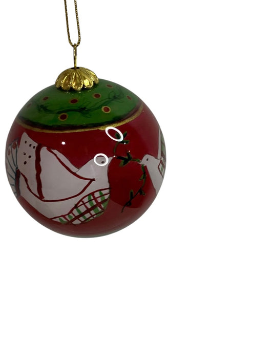 2004 Glass Painted Christmas Dove Ornament in Box 2.5"