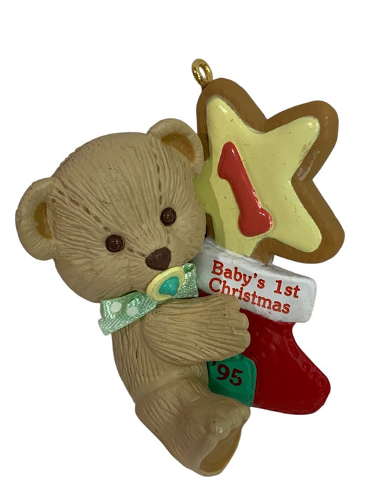 1995 Babys First Christmas Hallmark Keepsake Ornament Teddy Bear Stocking