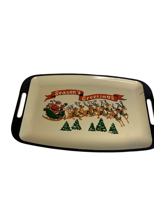 Midcentury Christmas Cookie Tray Handled Santa Seasons Greetings