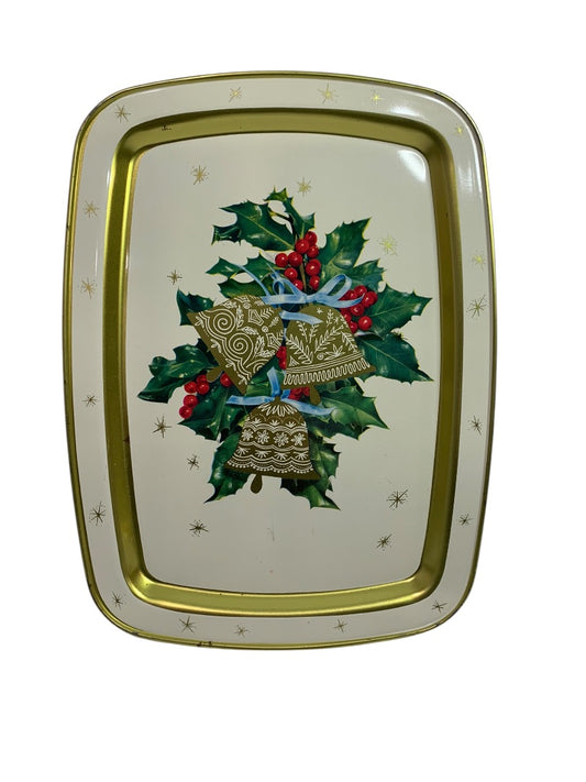 Vintage Holiday Christmas Metal Serving Tray 15 x 11 Inch Starburst Bells