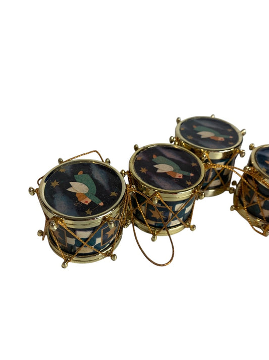 Set of 5 1990s Holiday Ornaments Drum Angel Lightweight 1.25 Inches