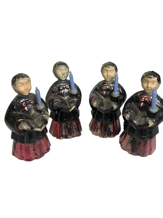 Set of 4 Choir Boy Celluloid Midcentury Metallic Holiday Decor Holding Candle 3 Inch