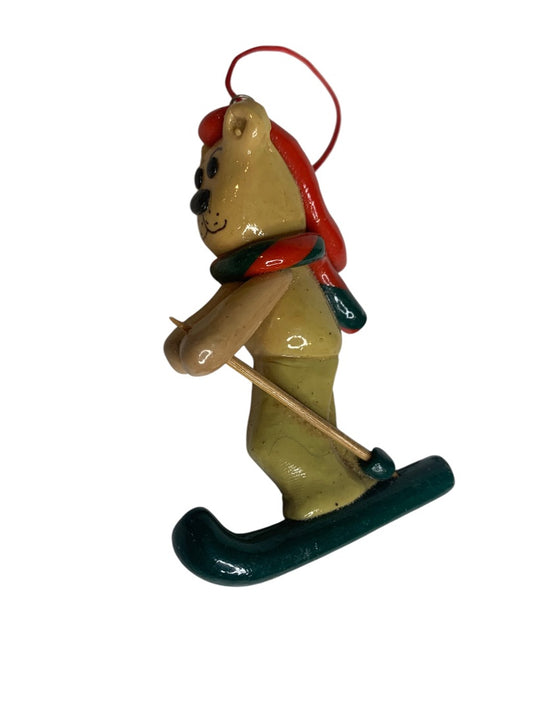 1990s Dough Ornament Skiing Bear Holiday Christmas 3.5 Inch