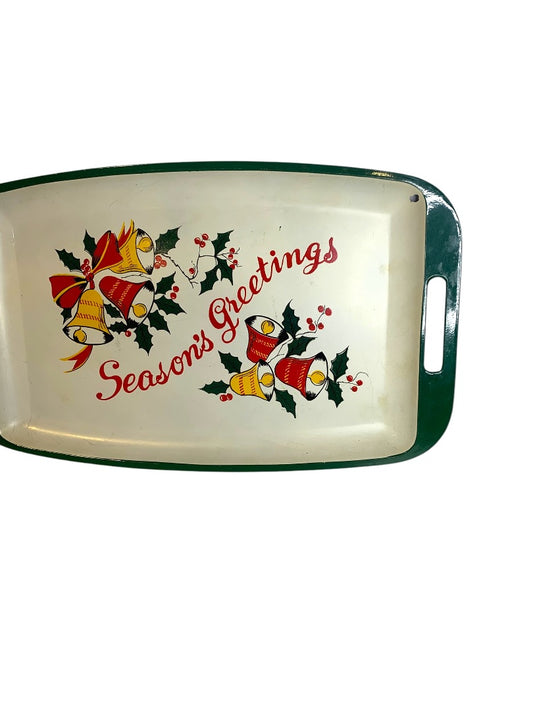 Midcentury Christmas Cookie Tray Handled Bells Seasons Greetings Japan