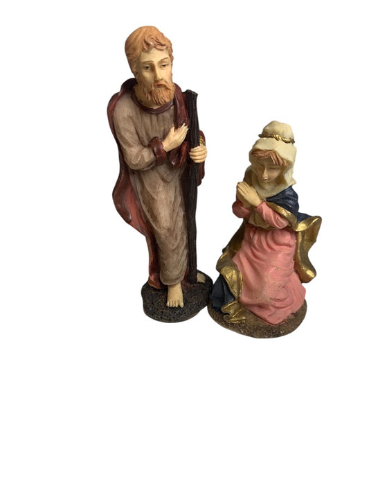 Nativity Resin Figurine Christmas Mary Kneeling Joseph 4 Inch
