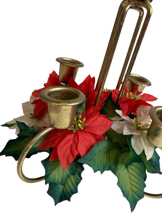 1960s Holiday Poinsettia 5 Taper Candle Holder Christmas Kitschy