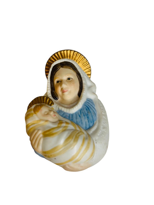 1983 Hallmark Ceramic Mary and Baby Jesus Christmas Ornament 3 Inch
