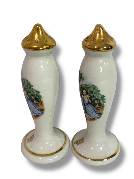 Vintage Taylor Smith Taylor TS&T Victorian Couple 6" Salt Pepper Shakers 22K Gold Trim