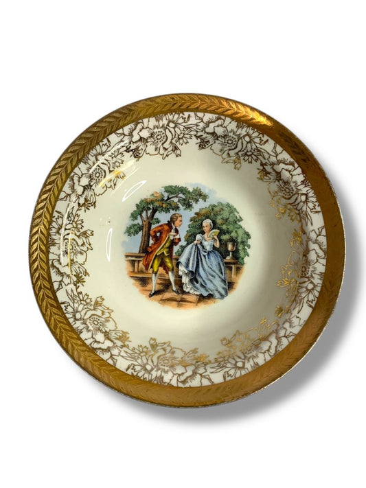 Vintage Taylor Smith Taylor TS&T Victorian Couple Fruit Bowl 5.25" 22K Gold Trim