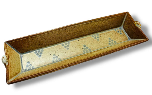 Stoneware Pottery Serving Relish Gray 13" x 3.5" Brown Blue