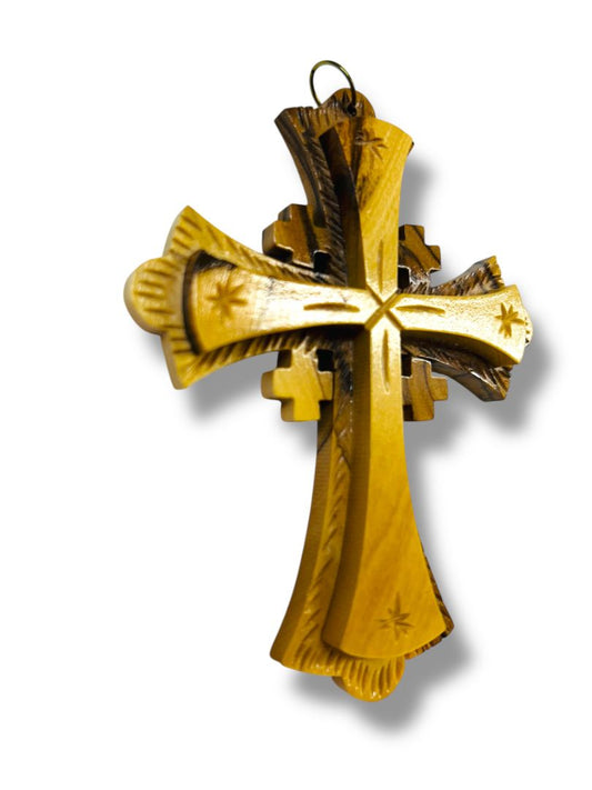 Carved Wooden Cross Ornament 4.25" Dimensional
