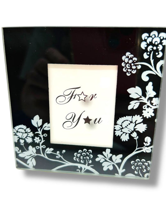 Set of 2 New Photo Glass Coasters 3.5" Square Black Floral