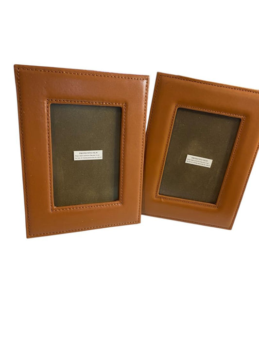 Set of 2 Tabletop Desktop Picture Frames Brown Leather 3 x 4.5"