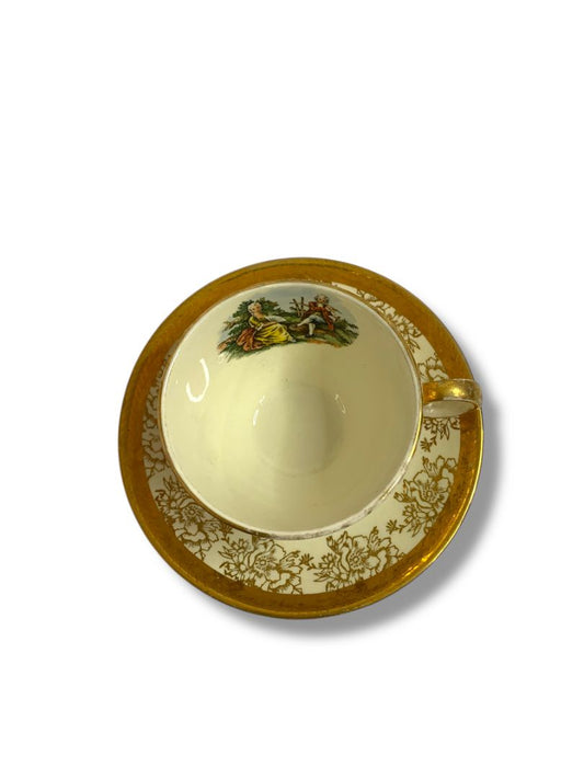 Vintage Taylor Smith Taylor TS&T Victorian Couple Teacup Saucer Set 22K Gold Trim