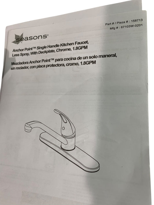 Seasons Single Handle Kitchen Fauced Less Spray Deckplate Chrome 158713