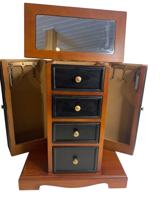 Tabletop Jewelry Armoire Brown Black Refinished 11"h x 9.5"l