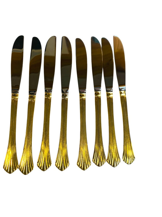Gold Electroplate Vintage Dinner Knife Set of 8 Scalloped 8.7 Inch