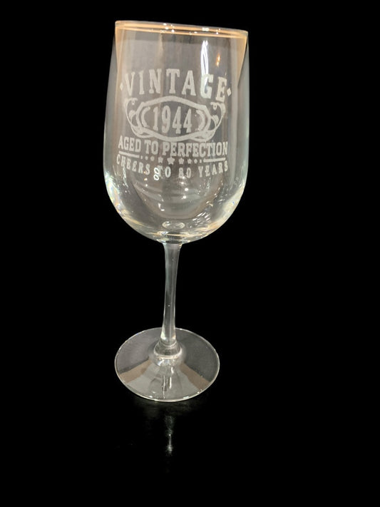 Etched Wine Glass "Vintage 1944 Aged to Perfection" Novelty 9 Inch