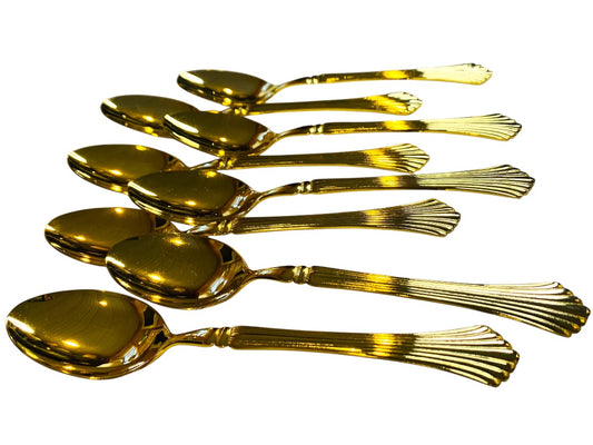 Gold Electroplate Vintage Teaspoons Set of 8 Scalloped 6.6 Inch