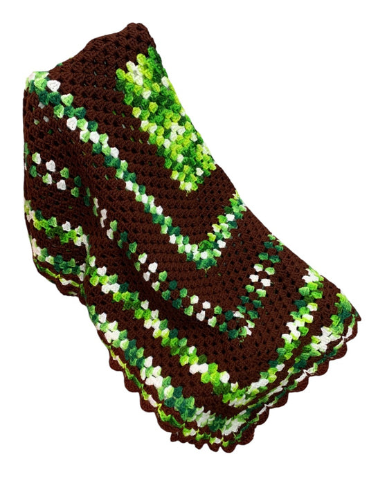 Vintage Brown Green Afghan Throw Blanket 48 Inches Square