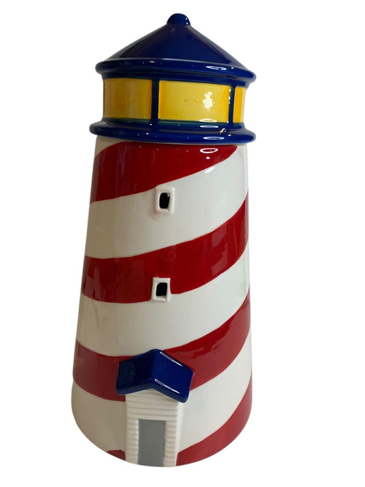 Cheryl's Ceramic Lidded Lighthouse Jar Open Windows 13 Inches Height