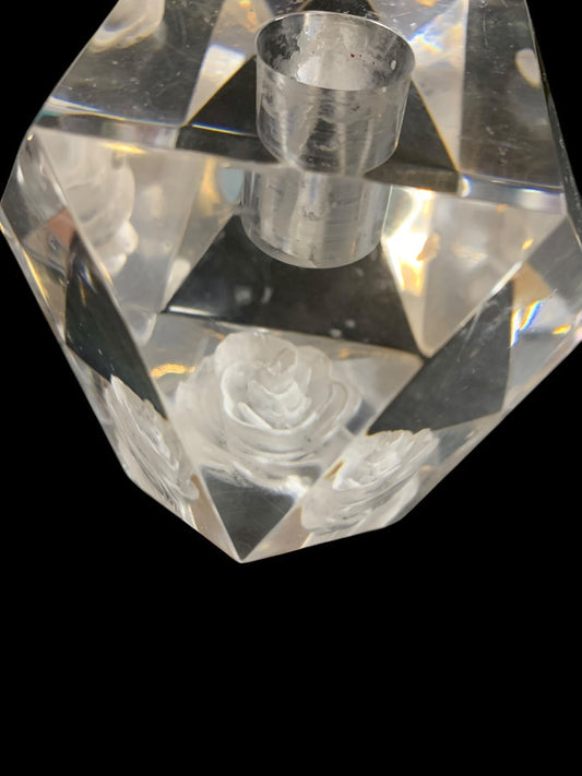 1980 Dekel's L.A.S. Lucite Acrylic Signed Candle Holders Rose