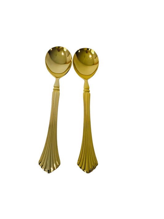 Gold Electroplate Vintage Sugar Spoons Set of 2 Scalloped 6.5 Inch