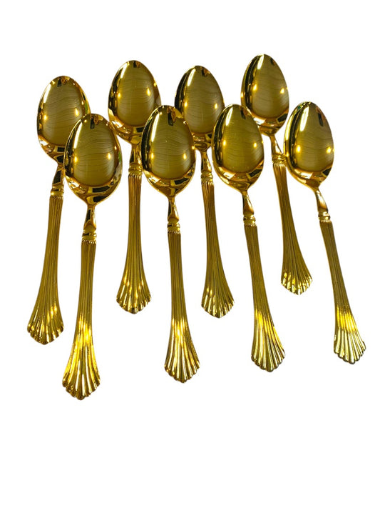 Gold Electroplate Vintage Tablespoons Set of 8 Scalloped 7.5 Inch