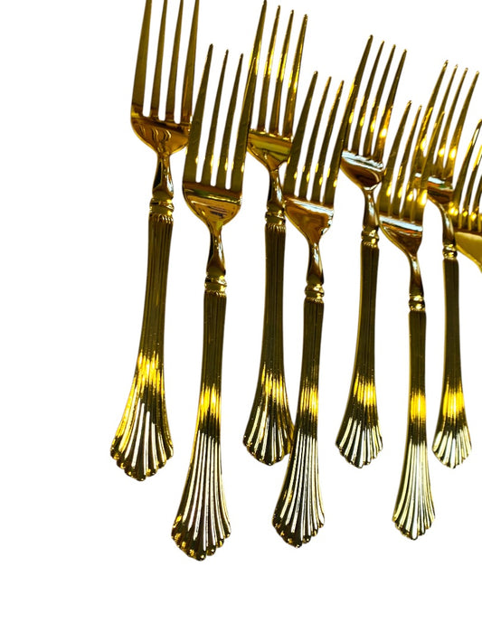 Gold Electroplate Vintage Dinner Forks Set of 8 Scalloped 7.75 Inch
