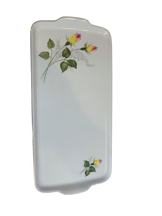 Vintage Hutschenreuther Bavaria Germany Yellow Pink Rose 12.5" Tray