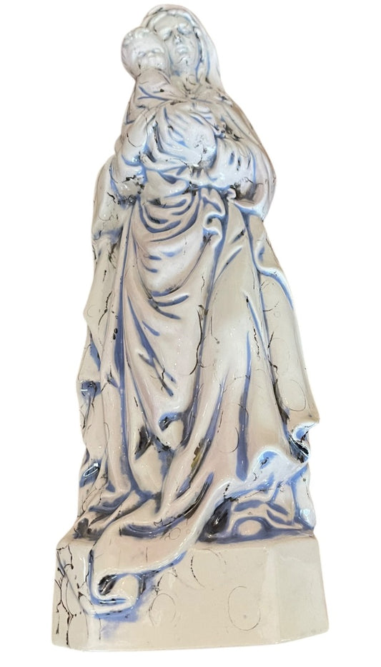 Vintage Madonna Baby Jesus Ceramic Figurine Artistic Glaze Blue Black 13.5 Inch