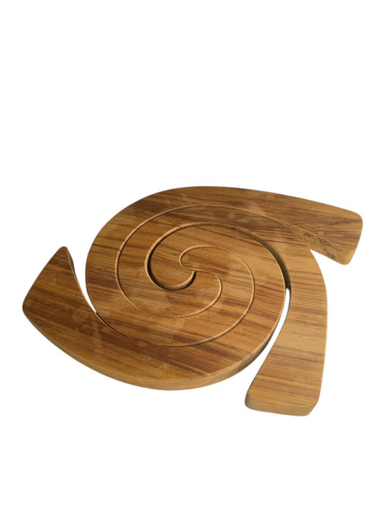 Rimu Timber New Zealand Signed Coil Trivet 3 Pieces 9 Inches Māori Loop