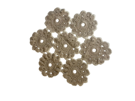 Vintage Crocheted Doily Pieced Pattern Beige Ivory Trim 11.5 Inches