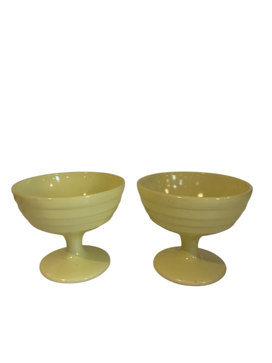 Set of 2 Hazel Atlas 1940s Sherbet Dish Moderntone Platonite Pastel Yellow