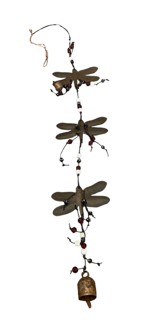Rustic 30" Metal Dragonfly Bell Glass Beads 4.5 Inch Wingspan
