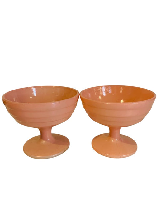 Set of 2 Hazel Atlas 1940s Sherbet Dish Moderntone Platonite Pastel Pink
