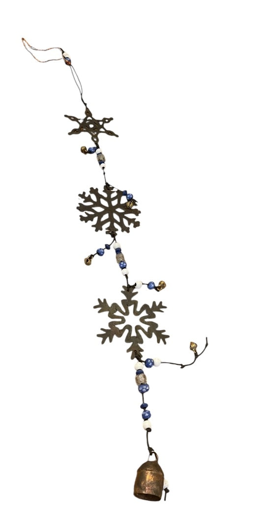 Rustic 3 Metal Snowflakes with Beads Bells Windchime 24 Length