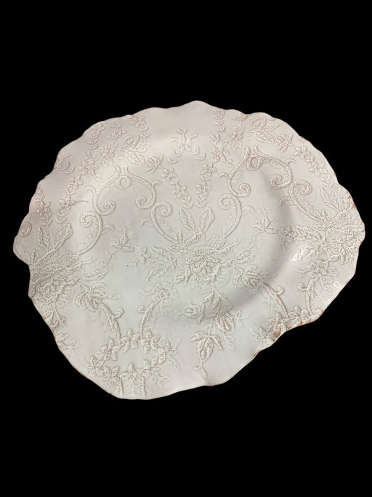 Art Pottery 15 Inch Serving Platter Plate Lace Design Shabby Chic White