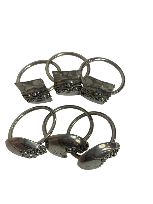 Set of 6 Silvertone Abstract Napkin Rings Tablewear Metal Artsy