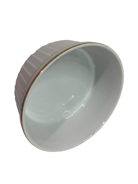 Oven to Table White Souffle Dish Gold Trim 7.25 Inch Diameter