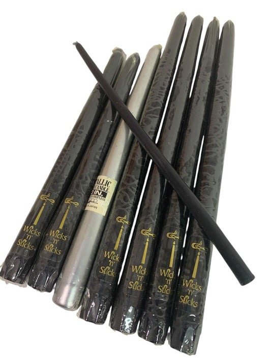 Lot of 8 Taper Candles 12 10 9 Black SilverWicks n Sticks