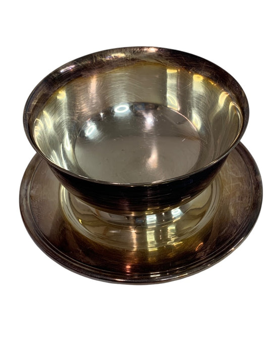 Gorham YC431 Silverplate Sauce Bowl Attached Plate 6” Diameter