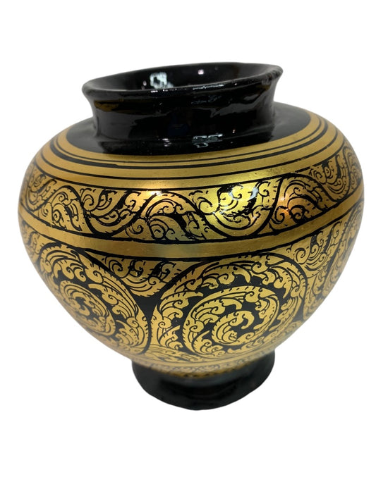 Vintage Vase Black Gold 5 Inches Painted Pottery Pot