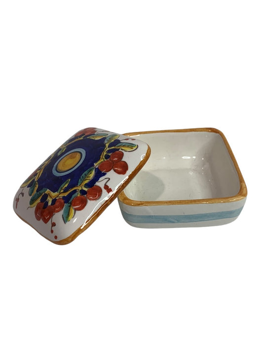Denuta Italy Hand Painted Ceramic Lidded Trinket Box 2.5 inches