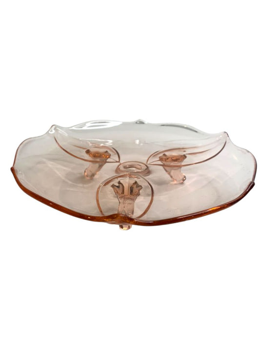 Lancaster Glass 1930s Petal Pink 8" Three Toed Plate Cupped Candy Dish