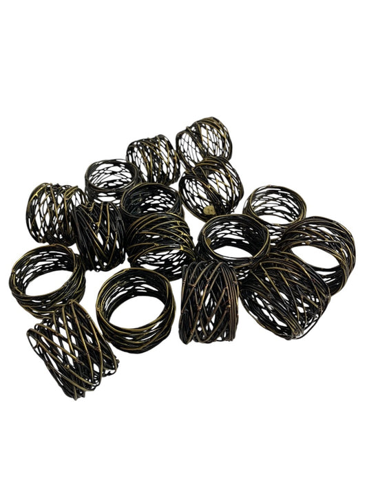 Set of 16 Metal Wire Napkin Rings Black Goldtone Heavy
