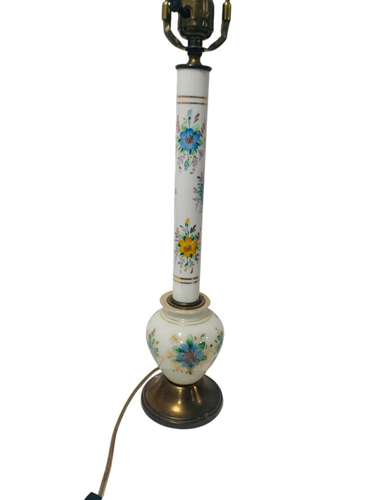 Vintage Milk Glass Painted Floral Table Lamp Blue Yellow Gold Trim Works 18.75"h