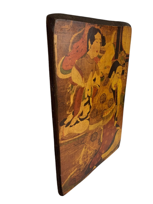 Woodblock Wall Hanging Vintage Japanese Scene Painting on Wood 17x11.5 Inches