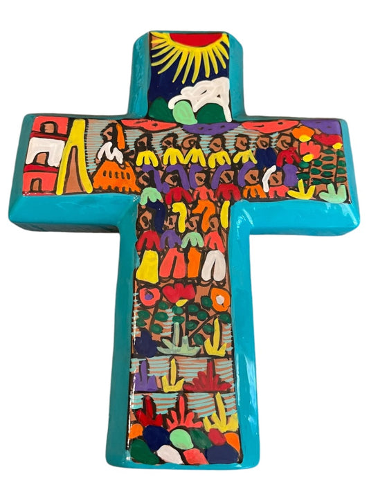 Glazed Art Pottery Hand Painted Cross Wall Vase Mexico